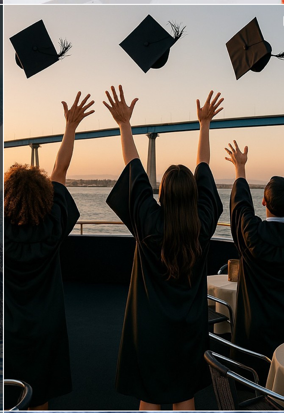 Flagship Cruises & Events invites guests to celebrate graduates with a special dinner cruise on San Diego Bay. Enjoy an evening full of love, laughter, and stunning waterfront views while savoring a gourmet dinner, live entertainment, and the festive atmosphere of a Flagship yacht. Perfect for families, friends, and graduates looking to mark this milestone in style, the cruise provides indoor dining with panoramic windows and open-air decks for photos and fresh air.